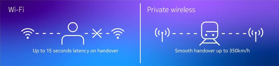 Private wireless technology enables radio waves to be emitted at higher power than other solutions. And, because it can operate in lower frequency bands, one PW access point provides the same coverage as up to 100 Wi-Fi access points. So it's much easier to cover a large expanse - as well as a lot quicker, cheaper and more reliable.